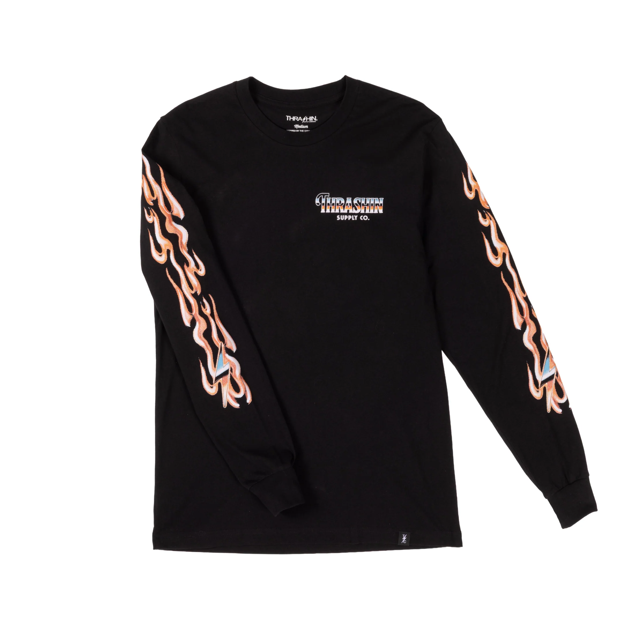 THRASHIN® Long Sleeve made from 5.3 oz 100% ring-spun cotton, this durable long sleeve features elastic thumb loops to keep sleeves in place and a water-based print for a soft hand feel. A classic, slightly boxy fit—made to last on and off the bike.