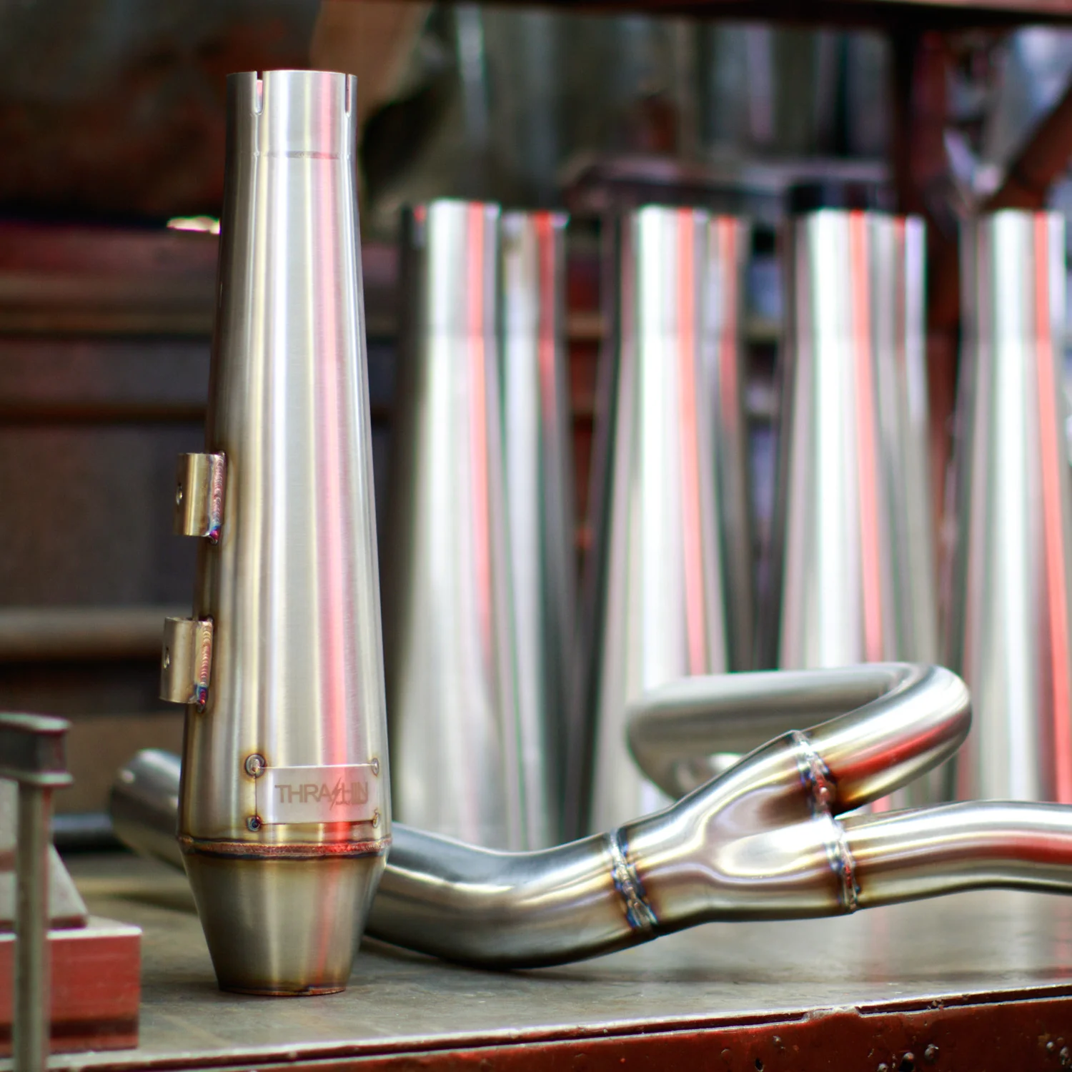 The Thrashin® OG Stainless 2 into 1 Exhaust is built with style and performance in mind. This exhaust is made of stainless steel and hand tig welded in Los Angeles, CA. Featuring 1-7/8" head pipes and a 2-1/4" collector this exhaust allows great flow over your stock system. The muffler has a 2-1/4 louver baffle to allow high flow and a great exhaust note.